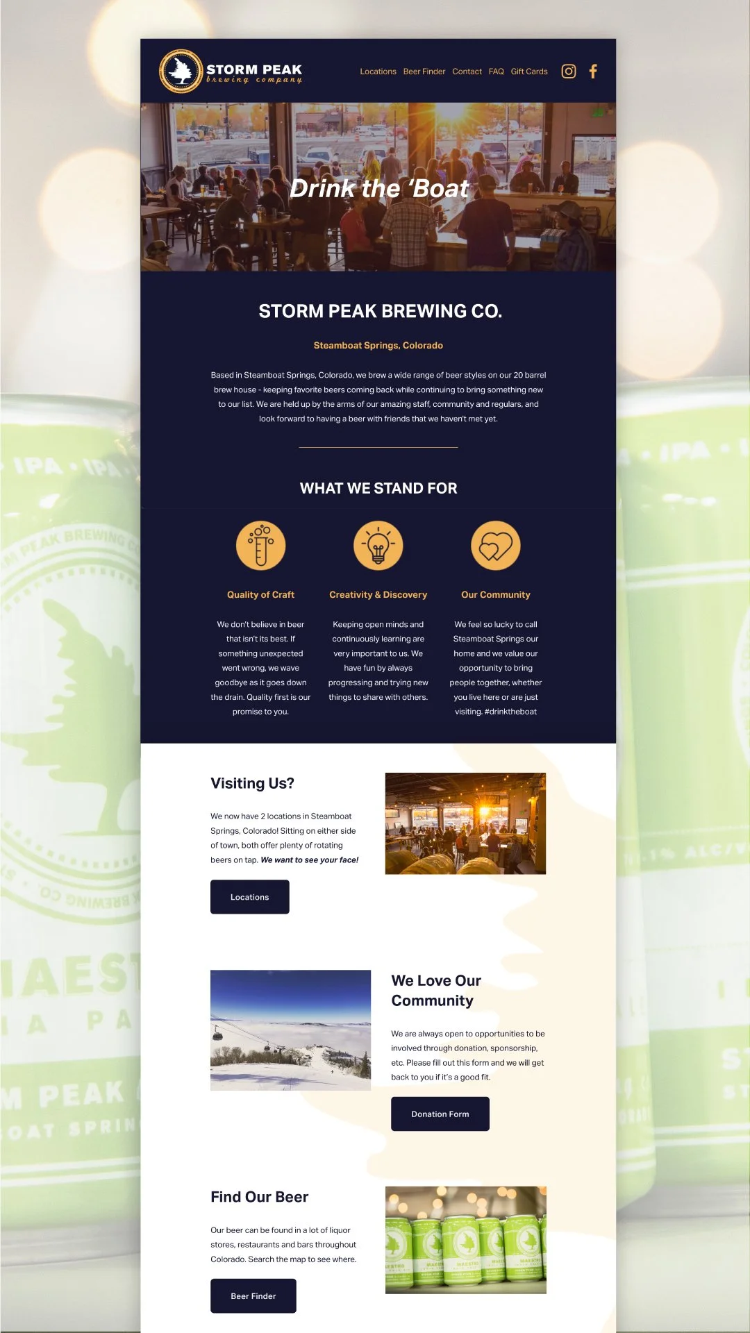 A brewery in a ski mountain town that caters to locals and tourists alike. Storm Peak Brewing Co. maintains a bootstrap approach long after they’ve seen success, which feeds most of their branding decisions. What we’re left with is a brand that is relatable and resonates with people. Casual vibes and quality-first product.